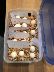 Op zaterdagmorgen zijn alle eieren van Bert overgelegd naar de vliegers bij mij. Hopen dat er nu geen vechtpartijen meer komen. Op 1 februari moeten de eerste jongen uitkomen. Tegen die tijd zullen de duiven bij Bert ook wel weer op eieren zitten.