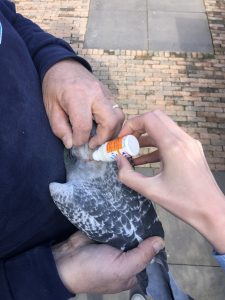 Tijdens het scheiden van de geslachten gelijk met mijn dochter samen de duiven even een luizendruppel in de nek gegeven.