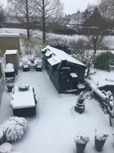 Eindelijk weer eens winter. Het hok stond er mooi bij vanmorgen in de verse sneeuw. Op facebook kwam ik vele plaatjes tegen van hokken in de sneeuw.