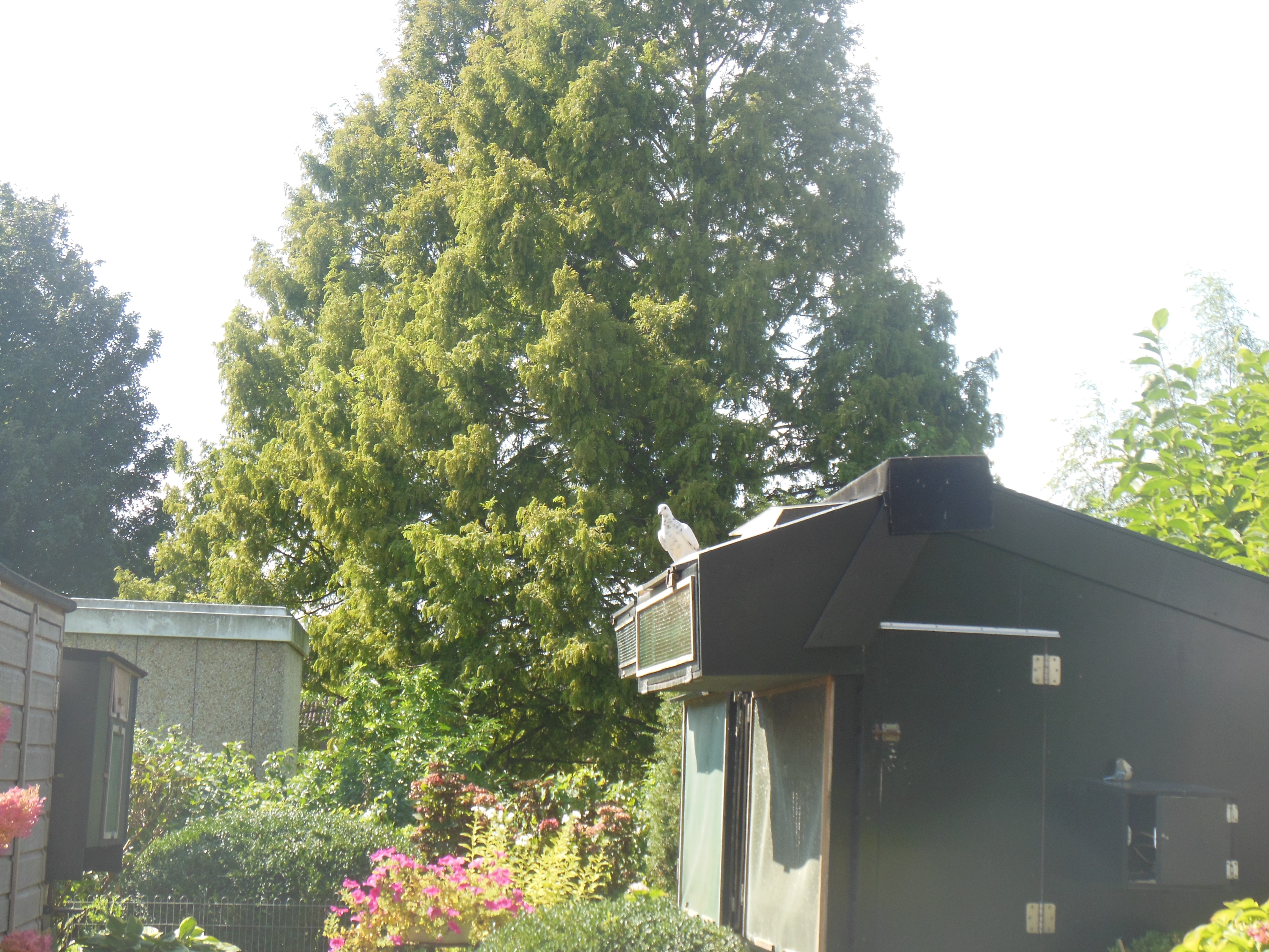 De oude zijn tot 18 uur bij elkaar gebleven. Dus vanmiddag alle tijd voor de jonge duiven. Toen de meeste jonge buiten waren heb ik de rest ook in de spoetnik gezet en de klep achter hun gesloten. Toen uiteindelijk alles ook de spoetnik uit was snel de plank weg gehaald en de spoetnikdeur gesloten. Dus alle jongen moesten via de bovenkant naar binnen. Dit is allemaal gelukt dus de 29 jonge weten in ieder geval waar ze naar binnen moeten als ze thuis zijn. Nog een week met korte avonden daarna kan er wat rust komen met de verzorging.