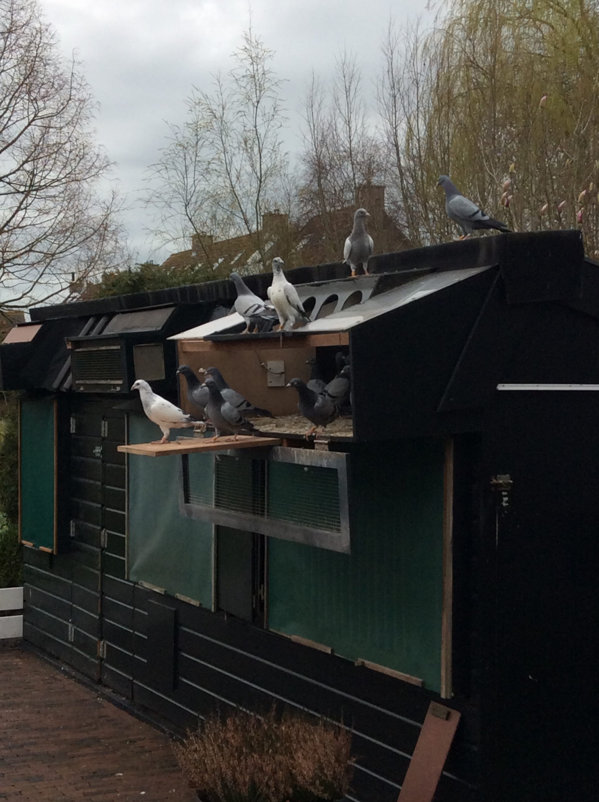 Vrijdagmiddag na mijn werk kon ik twee jongen ophalen bij Siem Westerink in Ouderkerk aan de Amstel. Bert had in het najaar weer een bon van hem gekocht. Dit naar aanleiding van een jong wat we in 2016 bij hem gehaald hadden ook via een bon. Dit jong is bij toeval op het kweekhok geraakt. Zij had als jong goed gepresteerd en in het najaar hadden we een duivin te kort op het kweekhok. Toen is besloten haar over te wennen naar Bert. Inmiddels zitten er vier verschillende kinderen die een keer bij de eerste drie in de regio hebben gespeeld. Bij thuiskomst ook gelijk de zeven jongen bij Bert vandaan gehaald en nog twee jongen van een weduwnaarskoppel gespeend. Nu zitten er 29 jongen in het jonge duivenhok. Hier komen er binnenkort nog vermoedelijk vier bij dan is het bij mij weer klaar voor dit jaar.