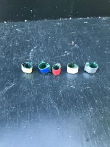 Op woensdagavond een aantal chipringen van de jongen voorzien van een gekleurd plakbandje. Dit is om straks alle blauwbanders een beetje uit elkaar te kunnen houden. Ik doe dit nu een paar jaar en werkt lekker makkelijk.