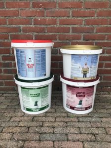 Donderdag kwam Raymond Moleveld de bestelde emmers grit brengen. Ik koop sinds dit voorjaar vier emmers grit van verschillende merken en meng dit door elkaar. Dit krijgen ze om de dag na het avondeten in de voerbak. Dus met vier emmers kan ik voorlopig weer voort.