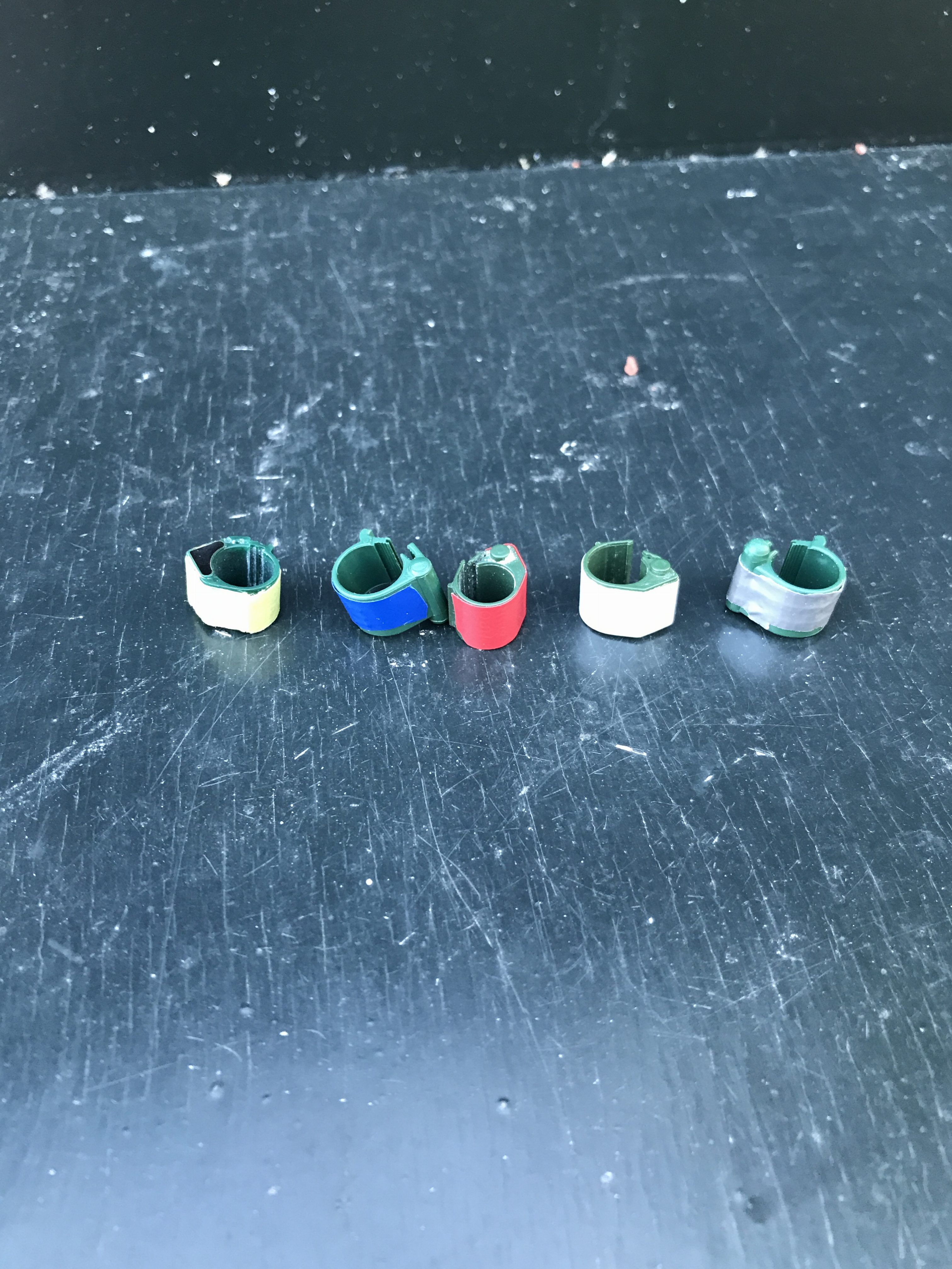 Op woensdagavond een aantal chipringen van de jongen voorzien van een gekleurd plakbandje. Dit is om straks alle blauwbanders een beetje uit elkaar te kunnen houden. Ik doe dit nu een paar jaar en werkt lekker makkelijk.