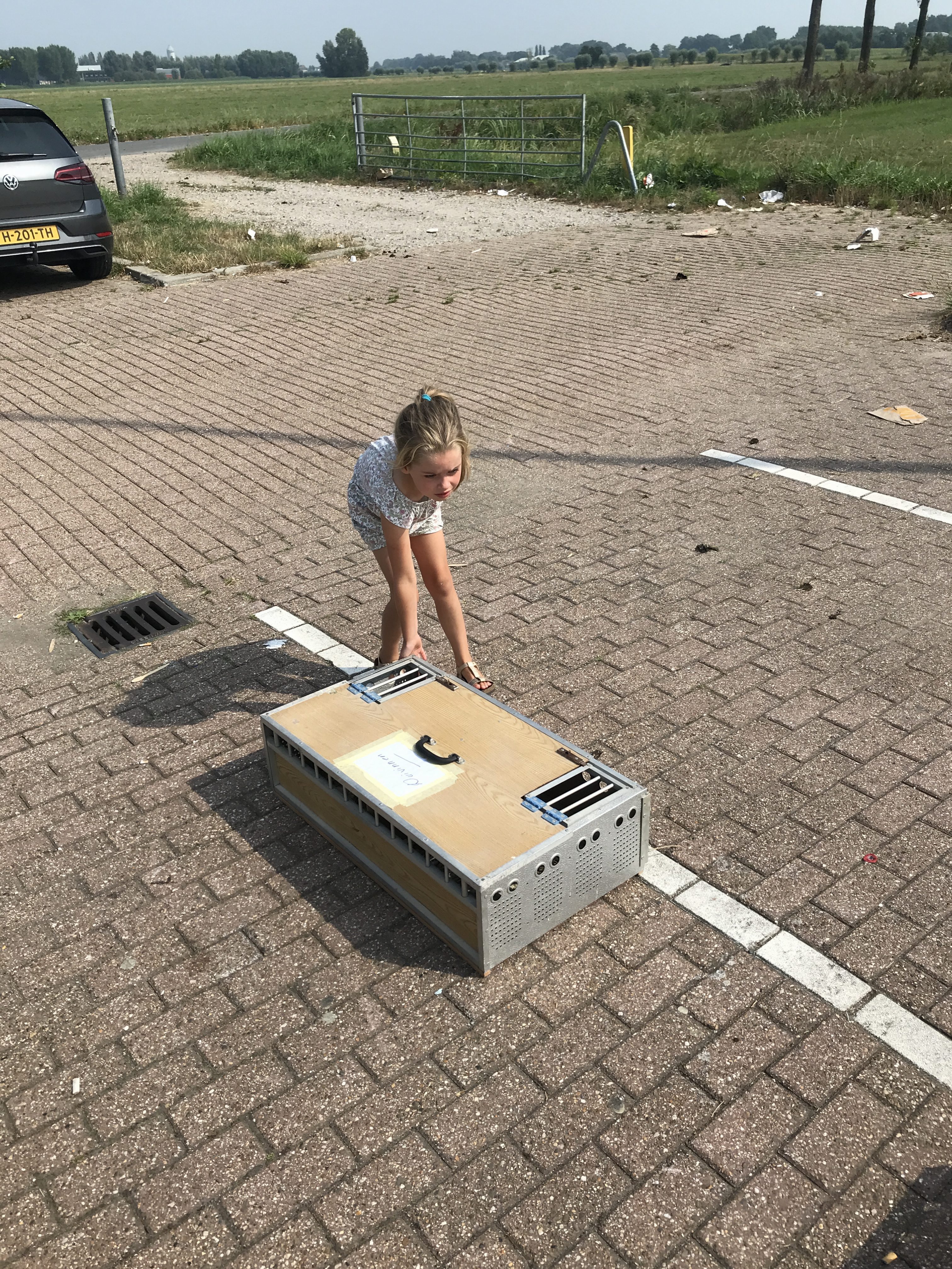 Vanaf maandagavond dat ik thuiskwam staat alles in het teken om te proberen de jongen goed aan de start van de vluchten brengen. Op dinsdagmorgen ben ik dan ook met de duiven naar Meerkerk gereden met een speciale convoyeur namelijk de kleindochter van Bert die graag mee wilden.